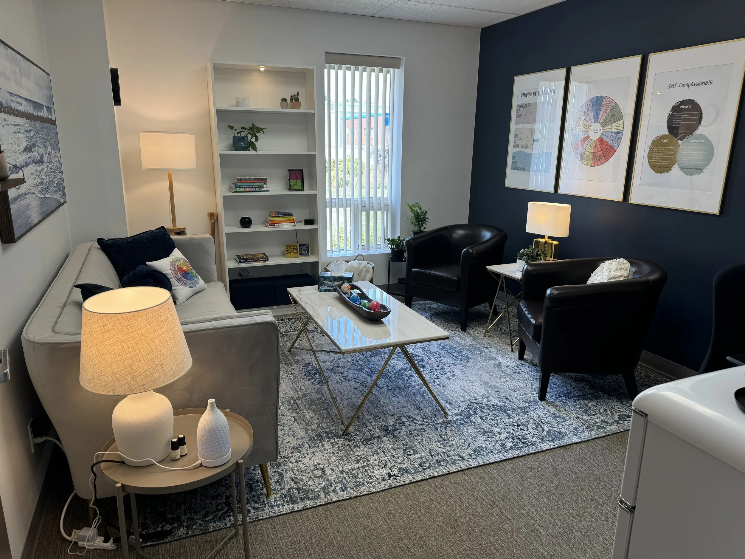 Our Burlington office is designed to provide a cozy, welcoming environment where you can feel at ease. During your session, this space is yours—whether you prefer to sit, move around, or stretch out on the couch. Your comfort is our priority, and we want you to feel free to express yourself in a way that feels comfortable.
